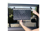 The one-push, quick-release button easily rolls up each shade when not in use. Mesh-style fabric maintains visibility for driver while providing needed shade for passenger(s).