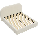 Modern Queen Bed Frame with Headboard - Boucle Pearl White