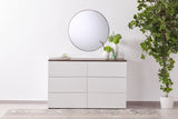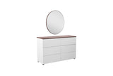 Features: Premium Melamine Finish: Designed with a high-quality melamine surface, this dresser offers a sleek, polished appearance while providing excellent durability against scratches, stains, and wear. Efficient Storage Solution: Featuring six spacious drawers, it provides ample room for organizing clothing, accessories, and essentials, ensuring your space remains neat and clutter-free. Functional and Stable Design: The dresser is supported by durable plastic legs for long-lasting stability and includes a built-in mirror, combining practicality with style to elevate any bedroom décor.