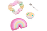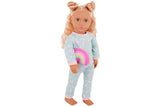 Explore double the dress-up fun with Our Generation 46cm doll Gillian! She wears a cute pink dress decorated with mini florals and comes with a bonus rainbow pajama! Themed accessories like a hair scrunchie, rainbow pillow, tall socks, a bowl of cereal, and a spoon add an extra fun touch to pretend slumber parties and bedtime storytelling. Gillian also has a huggable soft body and lifelike features that will delight doll fans during playtime.