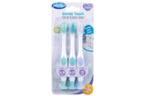 - Three brushes designed for baby’s first stages of oral care