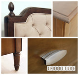 Features: Silver Wattle hard wood timber Steel extension ball bearing runners Quality metal handles Felt in top-drawers Deep button linen fabric upholstery