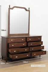 Prague 8-Drawer Silver Wattle Timber Dresser With Mirror