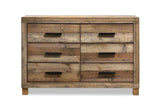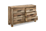 Features: Natural Wood Appearance Six Spacious Drawers Simulated Wood Grain Laminates English Dovetail Drawer Construction Rustic Sand Finish Included Mirror Functional and Stylish Bedroom Addition