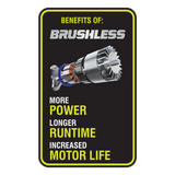 - Advanced brushless motor provides powerful performance and increased cutting efficiency