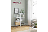 VASAGLE 4-Tier Bookshelf with Tempered Glass – Pearl White and Slate Gray