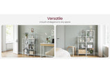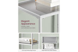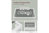 With slate grey glass shelves and a pearl white frame, this 4-tier storage rack boasts stunning modern minimalism. It allows you to display your greenery, books, and collectibles while elevating the look of your space